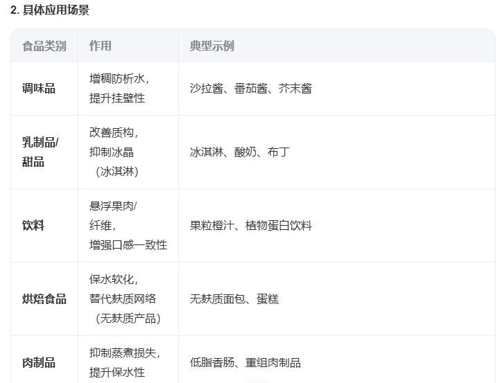 增稠/稳定:提升酱料、冰淇淋、乳制品口感,防止相分离。